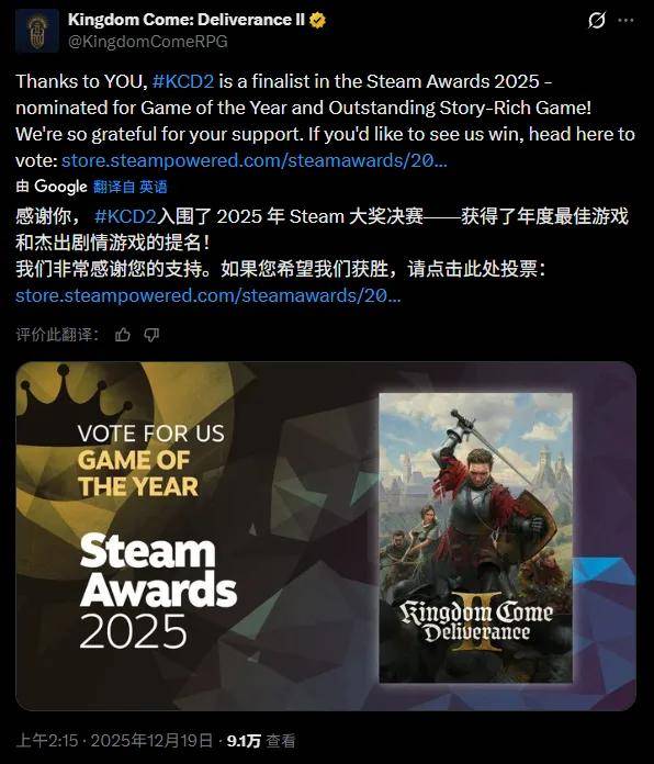 《天国:拯救2》拉票推文