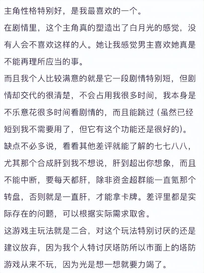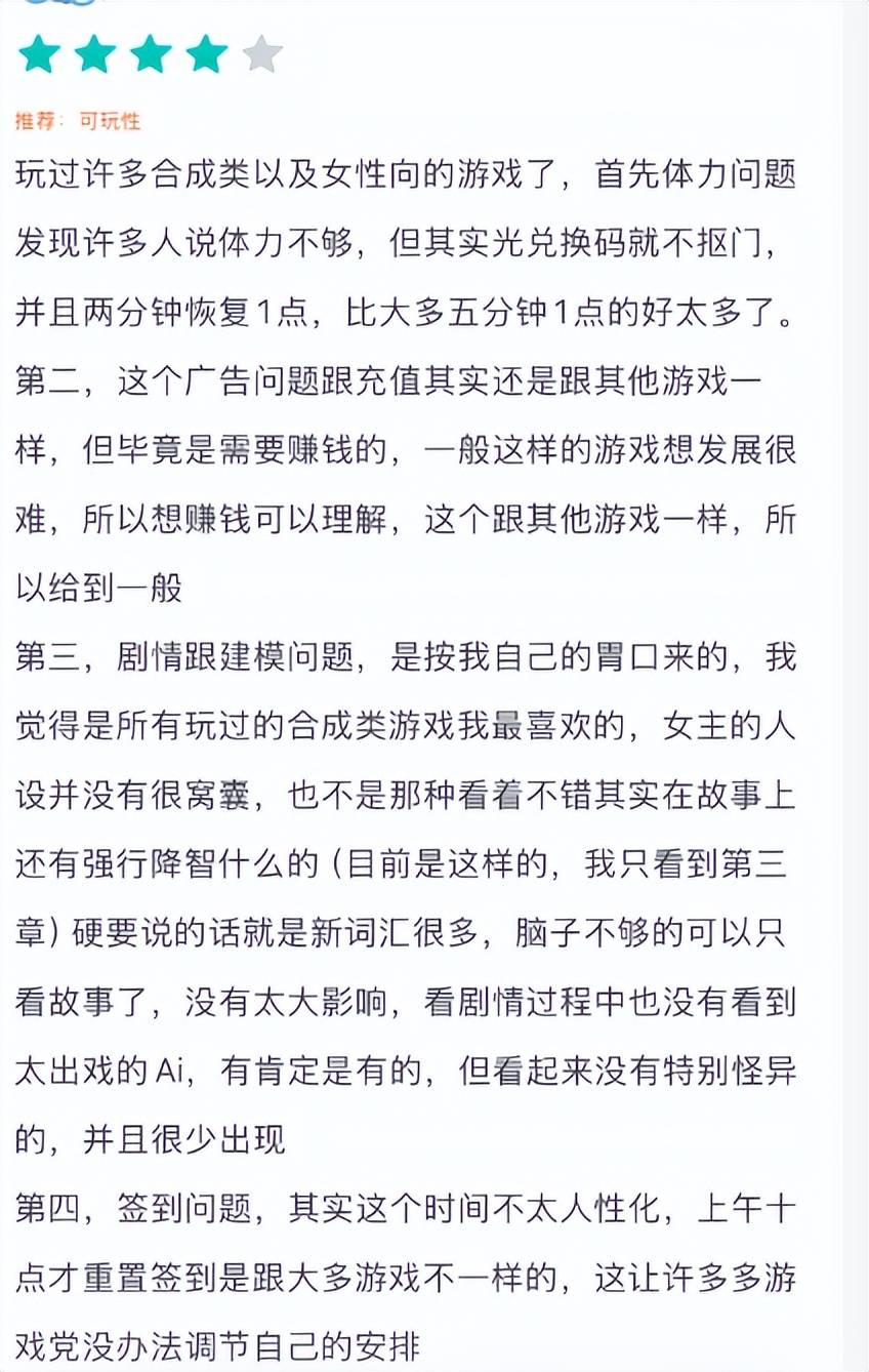 目前Taptap上评分7.0分,从很多玩家反馈来看,乙女皮的包装比较成功,对于人物塑造大多数玩家表示认可,不过体力值上比较克扣,前期经常会有卡壳的感觉。