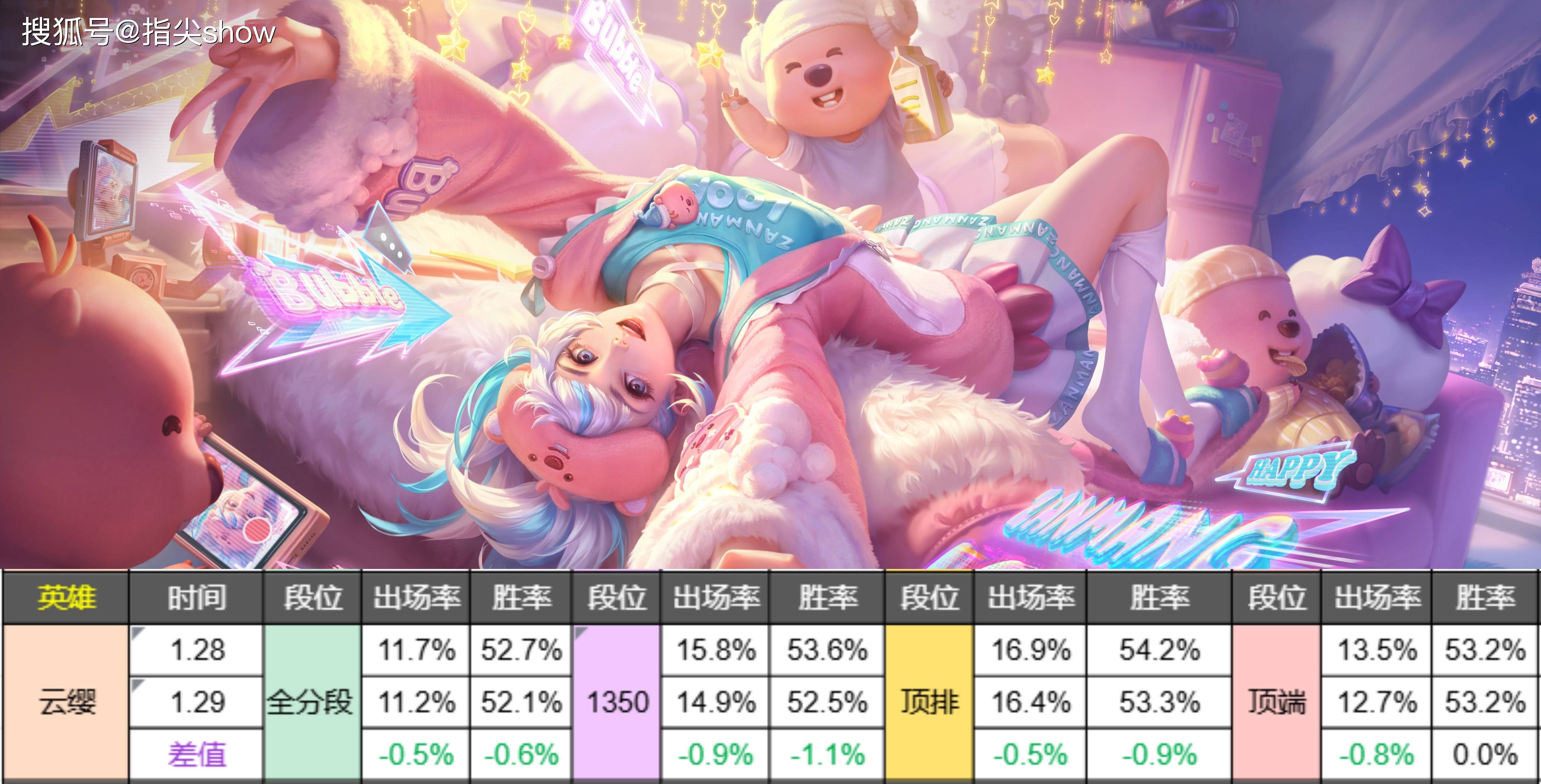 云缨的调整更多的是在技能手感上,这波调整后的胜率降幅比我想的要低了点,我原本觉得会有2%左右的胜率降幅,看来还是保守了一些。