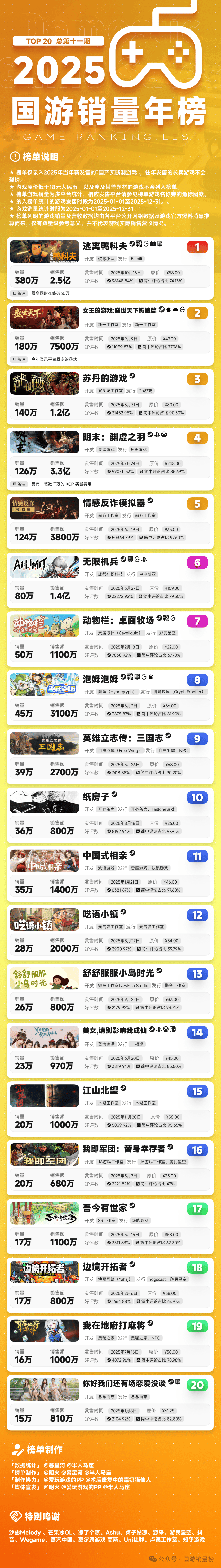 以下为国游销量榜统计的完整榜单: