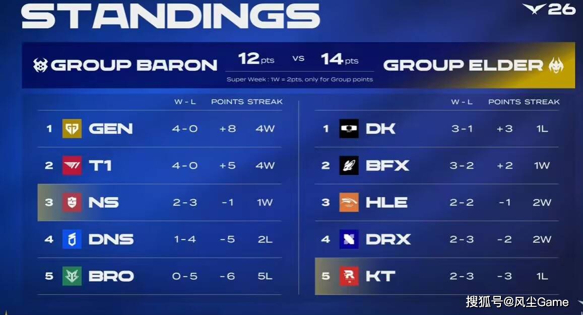 就此前的状态来看,T1应该是输不了的,DK输了那HLE就危险了,远古龙组现在垫底的DRX和KT,都是2-3战绩,KT的小分比DRX低,目前排在倒数第一,HLE现在是2-2的战绩,如果输GEN的话,小分会比DRX或者KT还低,是有很大可能性,成为远古龙组垫底队伍的,有高淘汰风险。