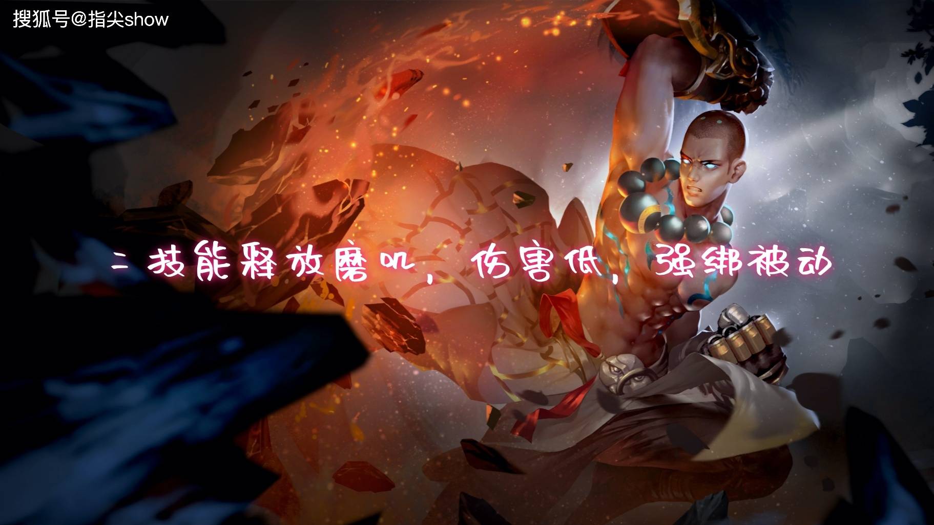 二技能其实是达摩的核心技能,但更多的是续航技能和强普触发器,看似总伤害不低,但不管是清兵还是打架都会很磨叽,尤其是清兵的时候,强普打残兵,导致满血兵线只能一点点磨。