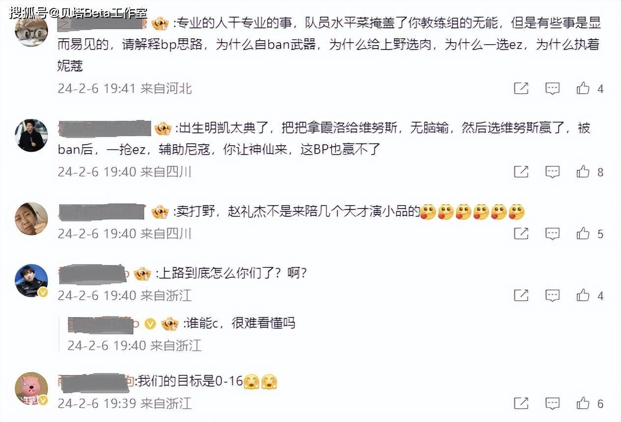 虽然这么说,但是很明显粉丝们是不买账的,毕竟现在的成绩确实是太差了。EDG官博下方的留言如下,这次被骂得最惨的是教练厂长,因为不少粉丝质疑:第二局靠着Ale的贾克斯赢了,但是第三局为什么要一抢EZ,让上野玩坦克英雄?让能C的选手玩肉,菜的选手去Carry,怎么可能赢?很多粉丝都要求换教练,或者要求厂长出来解释到底为什么要这样BP。当然也有粉丝在自嘲EDG这个赛季的目标就是0-16。