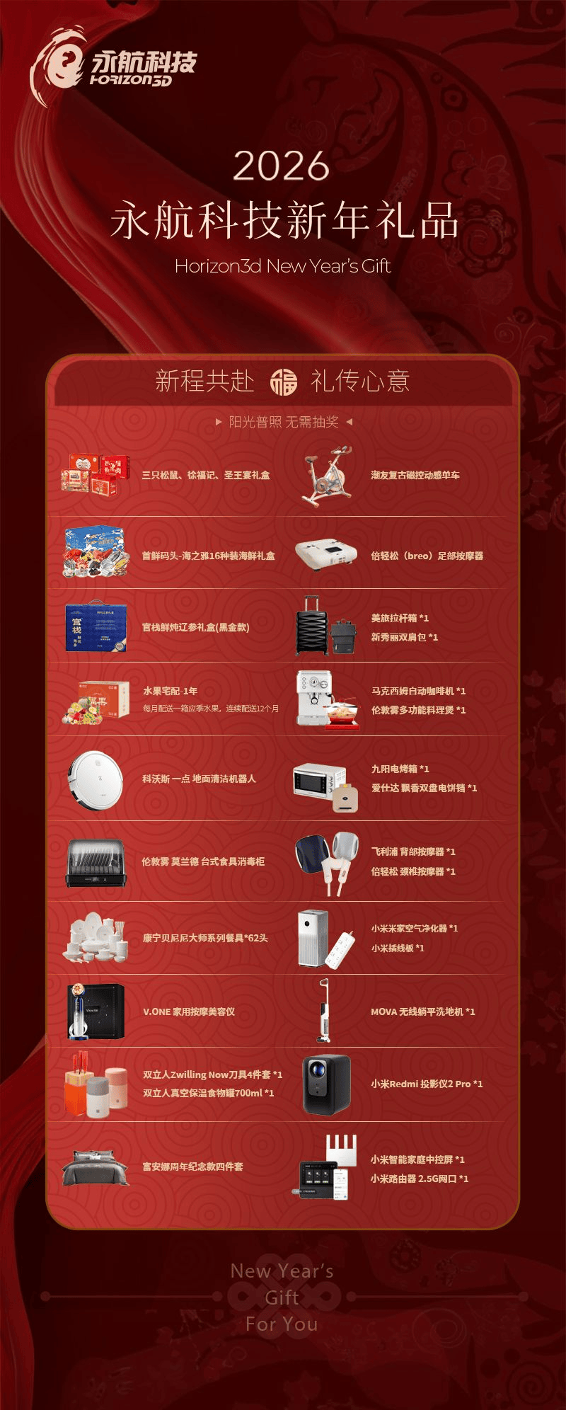 《QQ炫舞》研发商永航科技奖品分三档,第三档今年走的是居家实用流,礼品包含扫地机器人、咖啡机、按摩椅、床上四件套等。