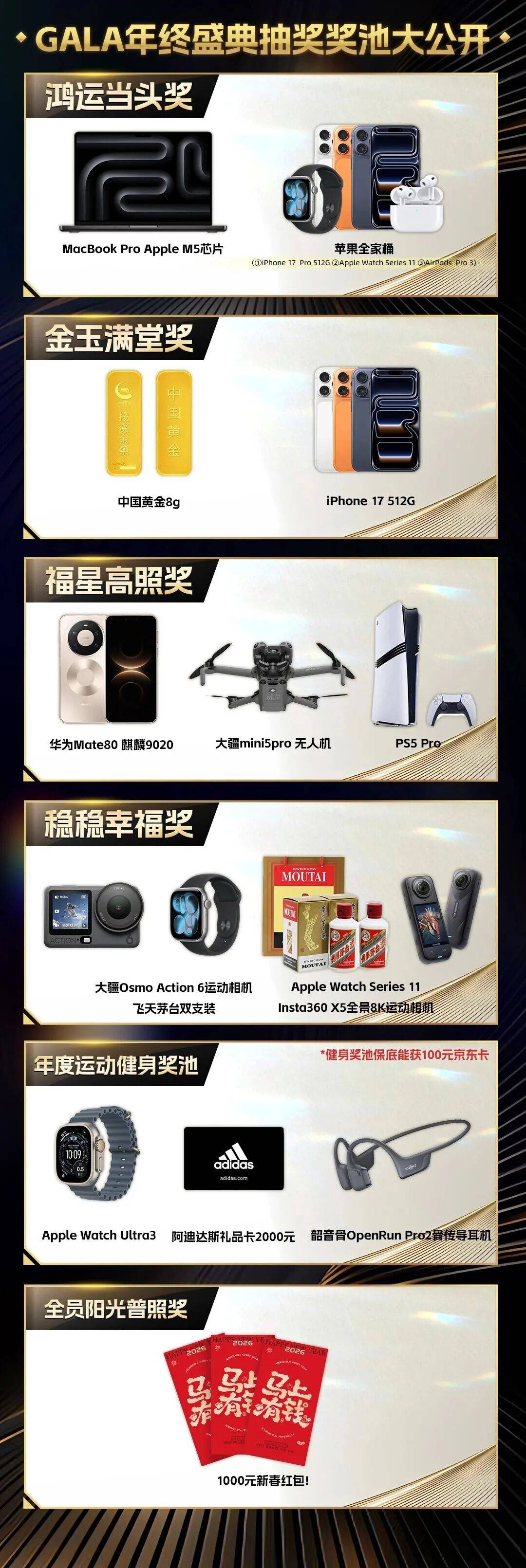 诗悦网络最高一档“诗悦欧皇奖”直接送出了苹果全家桶,全员可在价值2000元的礼品卡等九种产品中自选。