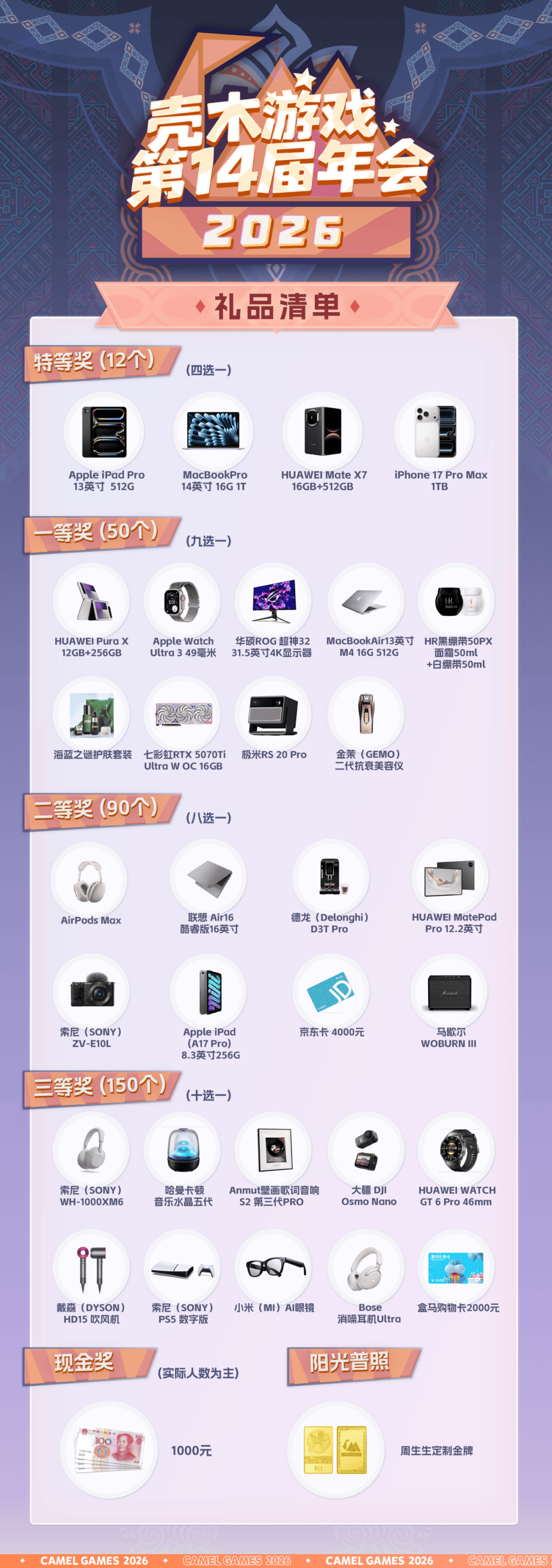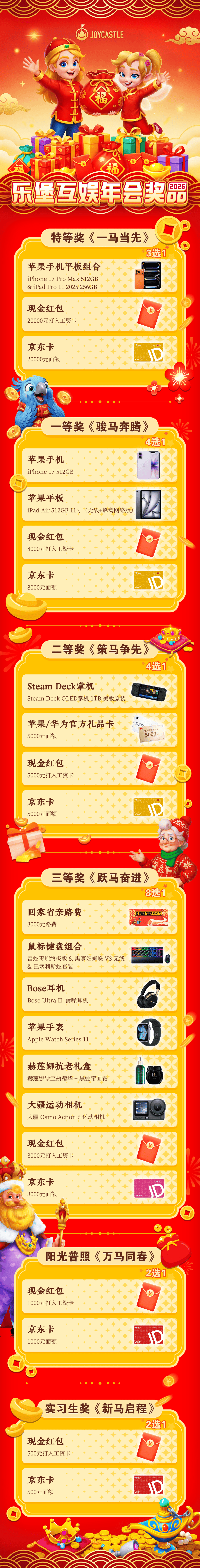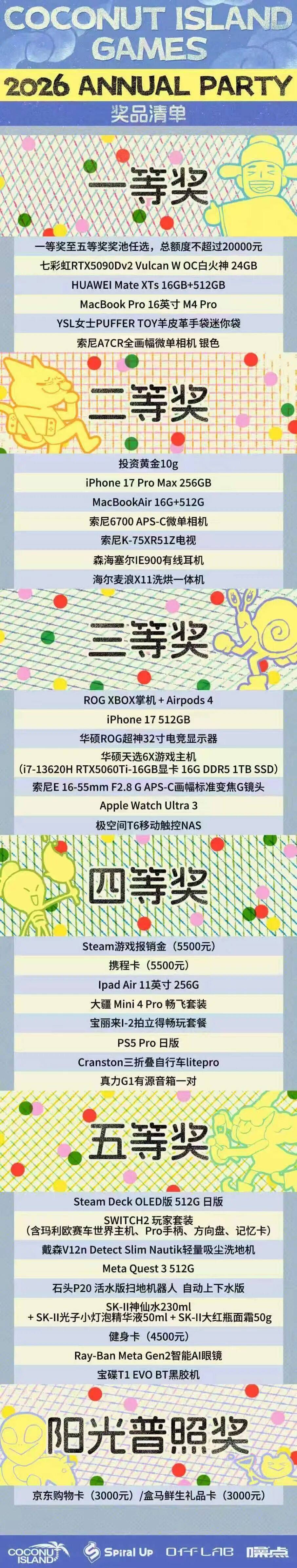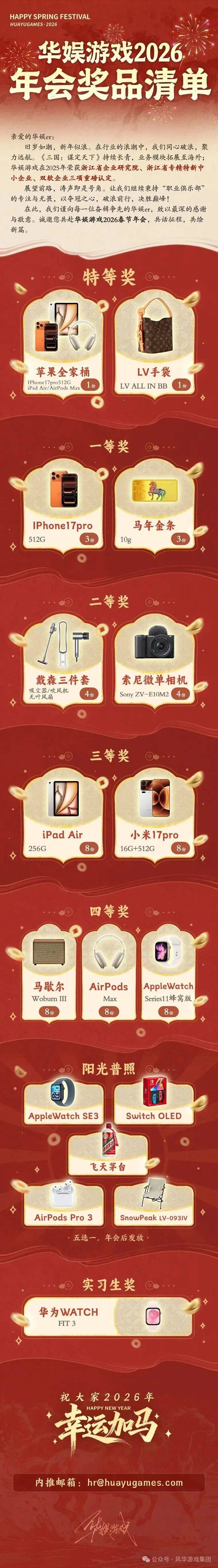 为什么会有这种感受?葡萄君观察了一遍发现,虽然各大游戏公司嘴上都说着今年不卷了,但2026年大家年会奖品的含金量依旧爆表。