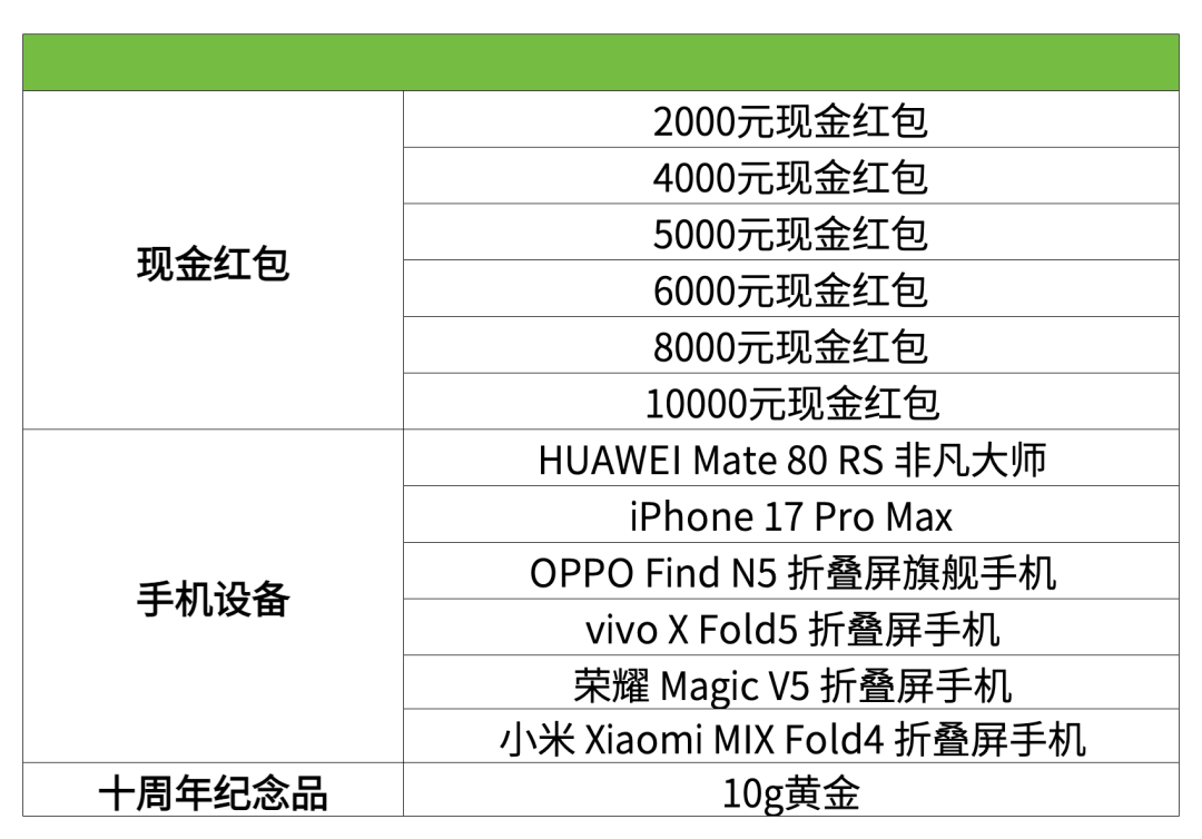 贪玩游戏最高10000元现金红包,手机奖品最高奖是华为Mate 80 RS 非凡大师;十周年之际,公司还为部分员工发放了10克黄金纪念品和定制手表