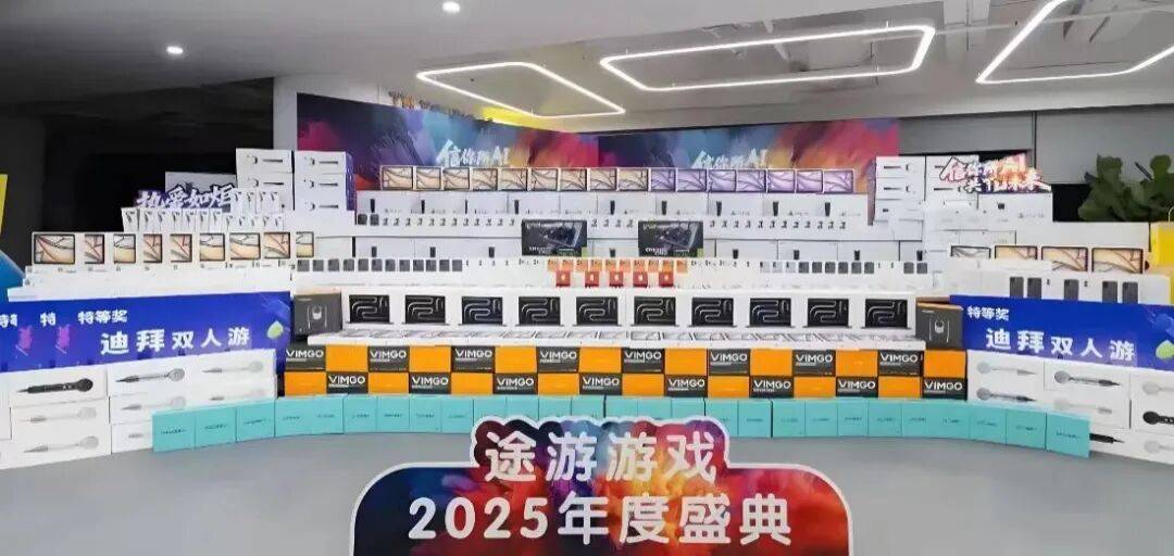 2025年推出了《三国:冰河时代》的途游游戏堪称今年年会最豪气的公司,在年会上抽了一辆官方定价26万元以上的特斯拉Model Y,特等奖为苹果全家桶/迪拜双人游/RTX 5090,“全体都有奖”则价值在几百上千元不等。
