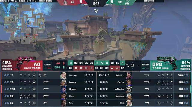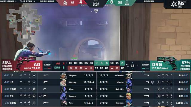AG连拿四分,第10回合DRG在B包点架住了AG的回防,幻灵斩获三杀带队赢下。