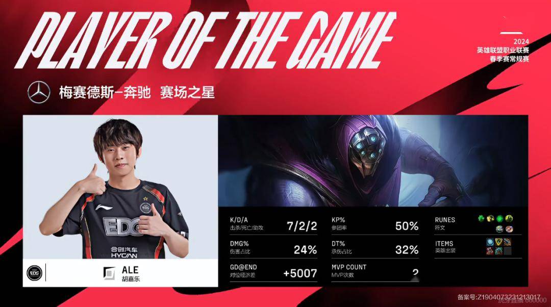 本场比赛,由上海EDG合创汽车取得胜利,MVP给到Ale选手!