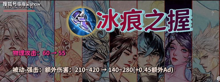 削弱了5点物攻,削弱了前期的强击伤害,但加了不少AD加成,所以现在的冰痕之握从“前期比暗影战斧伤害都高”,也变成了一件更倾向于中后期的半肉装备。