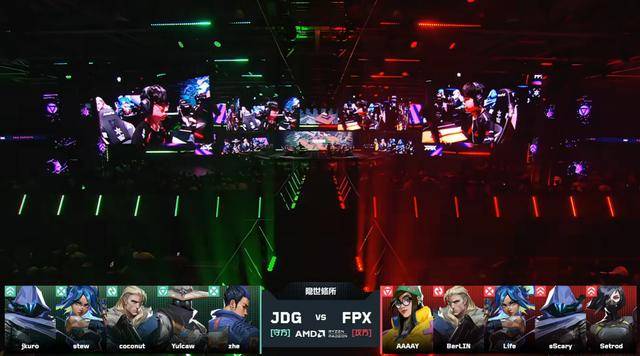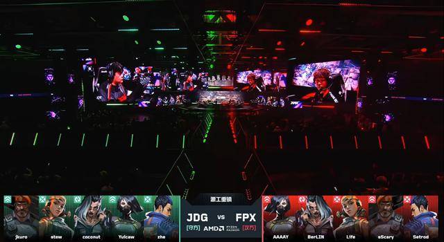 上半场JDG赢下少抢分,第3回合FPX撞上了JDG重防的C点,但阿阳在车库通道打掉JDG的回防赢下。