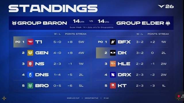 2026英雄联盟LCK杯的比赛正在如火如荼地进行当中,随着赛程进行到了“LCK超级周”,比赛的胜负也将直接决定着“大龙组”和“远古龙组”队伍的晋级形势。按照LCK今年的赛制,他们第一赛段常规赛结束后两组将比拼积分,分数更高的那一组将成为胜者组,分数低的则称为败者组。