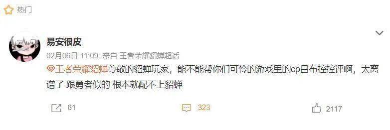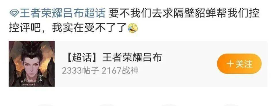 而且吕布玩家还非常懂,求助说的还是“尊敬的貂蝉玩家,能不能帮你们可怜的游戏里的cp吕布控控评啊,太离谱了跟勇者似的,根本就配不上貂蝉”。