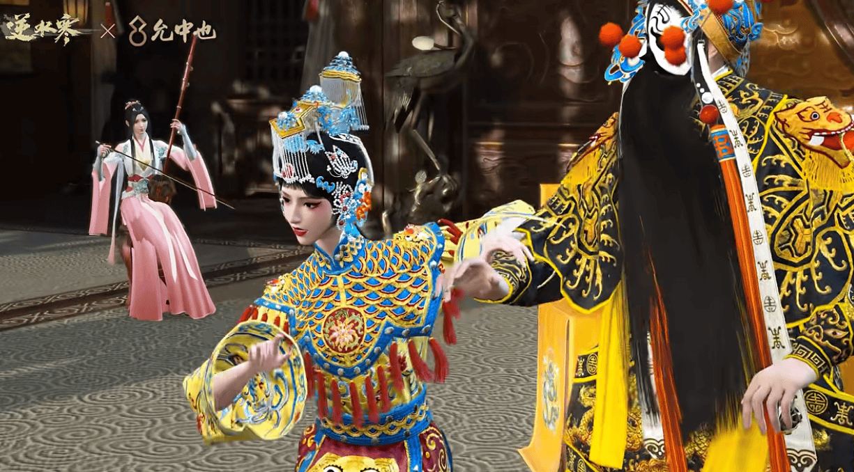 当国潮风吹到了逆水寒,官方先是请来了著名京剧表演艺术家史依弘老师,与青年花脸演员徐朝嬴老师,联手再现京剧巅峰之作《霸王别姬》,并将其1:1还原到游戏中,免费让玩家在游戏里欣赏。
