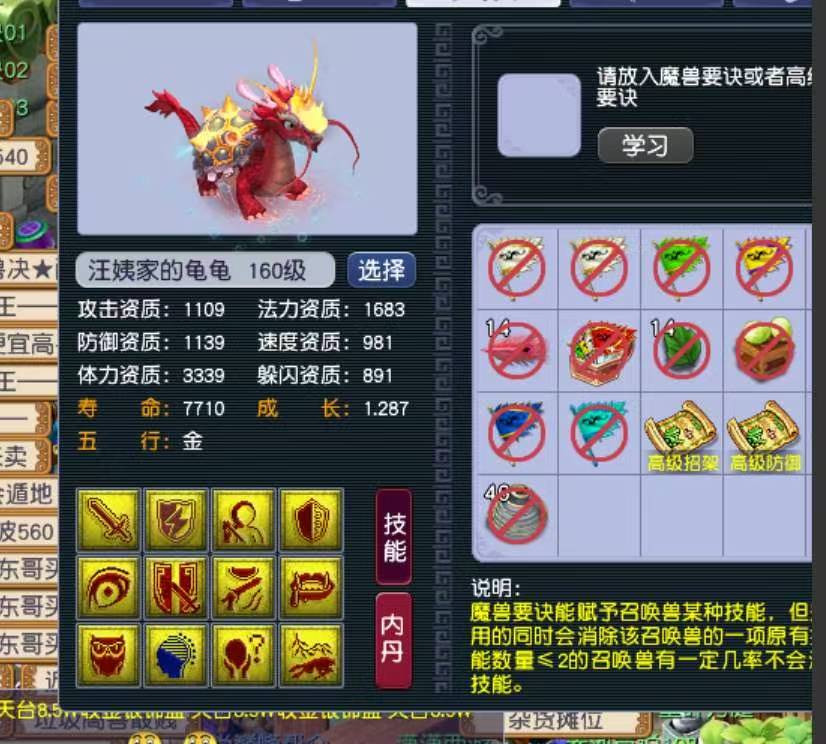 经过一通操作精妙的打书,这只龙龟虽仍带有一个低级技能,但已完全不影响实战,如今它已成为【无与伦比】服务器中名副其实的顶尖PK攻宠。