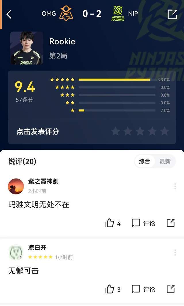 笔者还发现该板块下不仅有直播和回放功能,还可以看到对局中各个选手的种种数据,如KDA、出装等,甚至,在刚刚结束的NIP与OMG的比赛中,Rookie等选手对局中的评分也是第一时间呈现了出来。这种社区互动属性点满的功能,相当符合喜欢游戏和喜爱观看赛事的玩家的口味。而各个游戏直播背景也更符合该款游戏的特征,英雄联盟直播背景与官方蓝紫色背景相同,这无疑会给玩家带来更为沉浸的观赛体验。