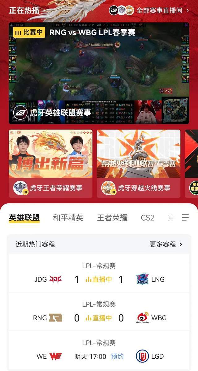 点开英雄联盟,近期LPL热门赛事2024LPL春季赛一一呈现,且有着详细的赛程信息,比如正在进行的比赛:JDG对战LNG、RNG对战WBG,以及明日WE与LGD的比赛预告。相关赛事之下玩家们的互动也是相当频繁,如标题为“LPL赛事没品图之《LPL电竞春晚节目单》”的帖子,已经获得1000+次点赞和50+评论。该页面下,玩家不仅可以一目了然获知赛程讯息,还可以积极参与赛事相关赛况、八卦等讨论,社区氛围浓厚。