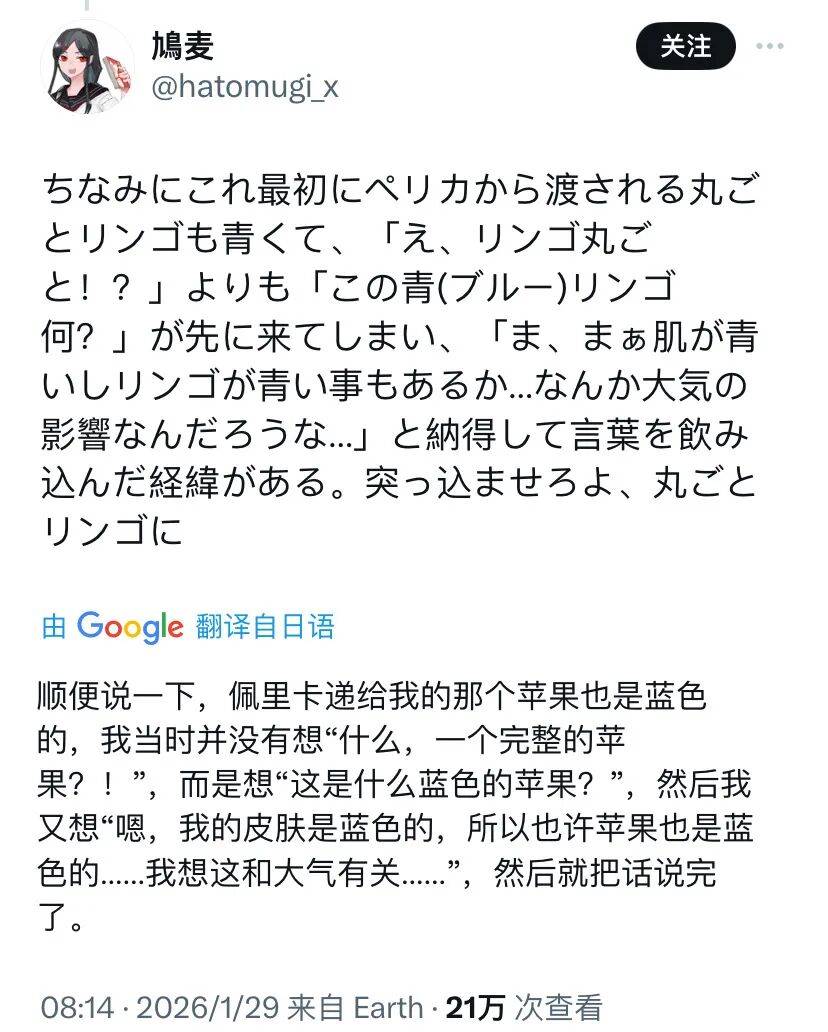 但这位玩家并没有意识到,因为《终末地》中有外星以及源石的元素,这位玩家还以为这都是正常现象,毕竟都是外星人了,肤色发生变异也是很正常的事,甚至连看到蓝色苹果的时候都自动合理化了。但鉴于以往还没见过真的因为环境而设置肤色的游戏,博主还是选择分享出来。