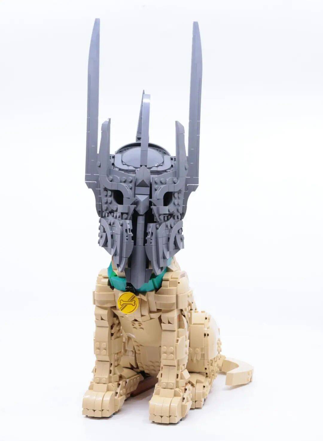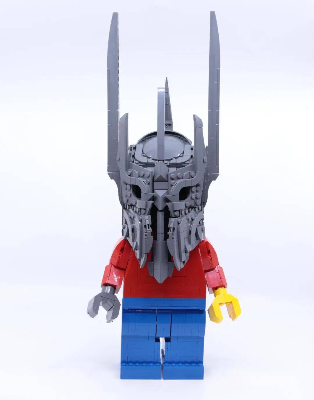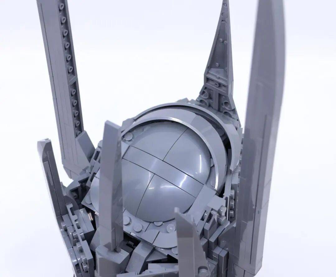 从正面看去,模型对“虚空”的刻画尤为出色:眼窝的深邃、鼻孔的凹陷,以及面部轮廓向内收紧的线条,共同传递出索伦特有的威严与压迫感。这些电影中的经典元素,被成功地转化为了乐高语言。