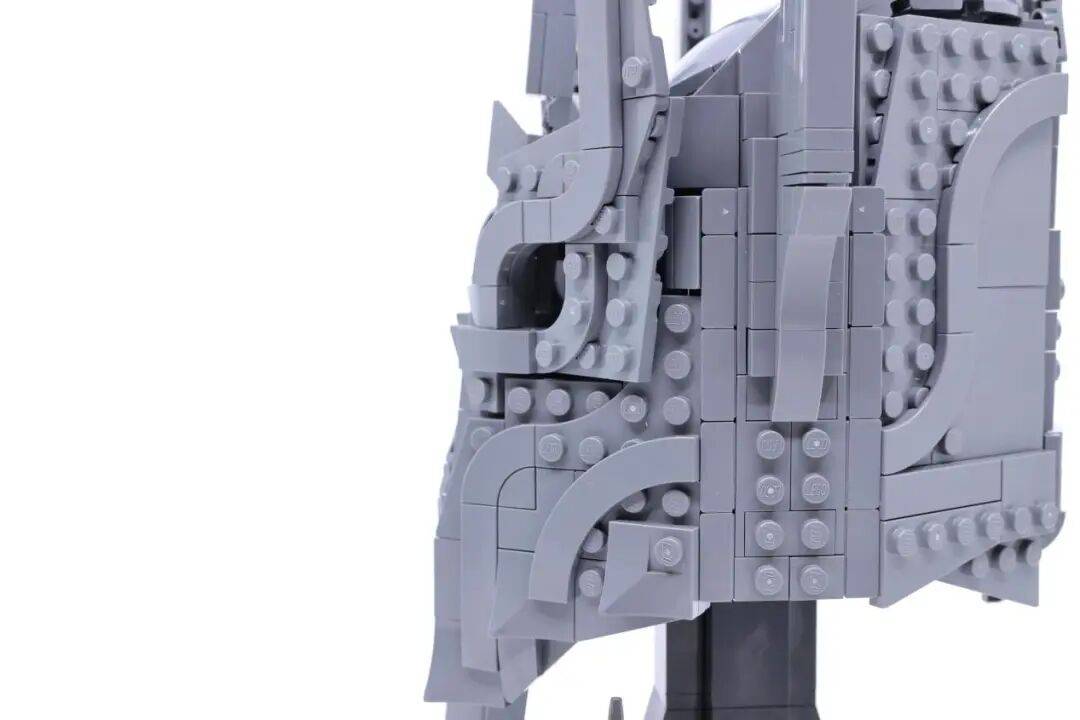 零件的叠搭、角度与线条收束都控制得相当精准,使得头盔细节丰富却不显琐碎。整体采用对称结构,左右拼搭虽有重复,但并不会让人觉得枯燥。