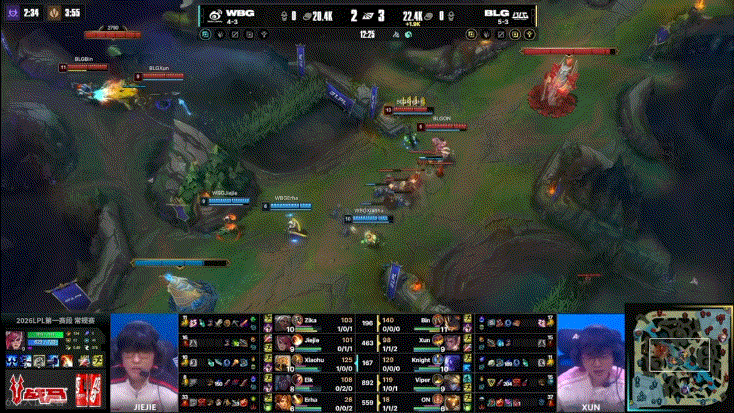 同一天的另一场比赛,是WBG大战BLG,这场比赛开打之前,WBG完成了对JDG的双杀,队伍正处于三连胜状态,而BLG此前连输JDG和滔搏,收获了一波三连败,虽然有IG帮忙充电,但大部分观众都觉得,微博跟BLG有的打,结果大家都失算了,BLG像捏小鸡一样,把WBG速通了。