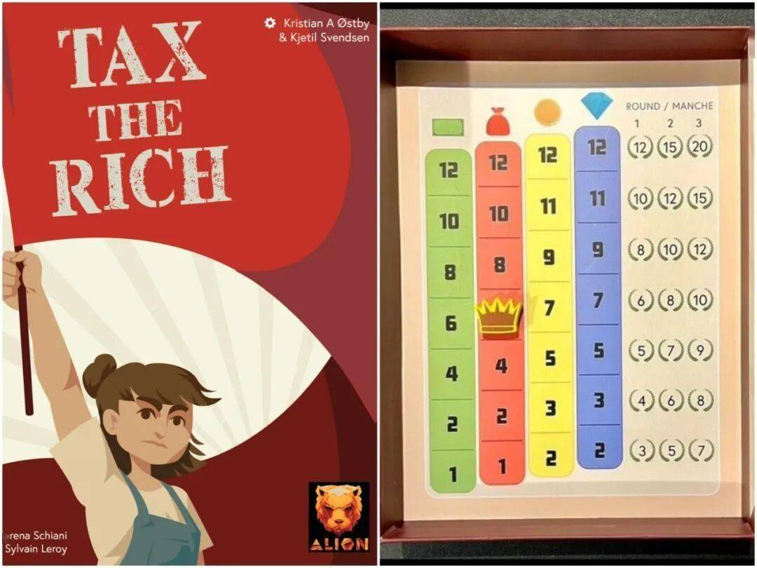 复古风潮——最后说回到2025年,在去年328款游戏中,可能最让人关注的就是《Tax the Rich》了,在实际拿到之后,我发现它可能是这几年吃墩游戏中最“复古”的一个了。它的bidding phase几乎复刻了桥牌的叫牌机制,而唯一不同的则是将找队友的设置从固定变成了随机。此外,加入的“革命”机制,除了会将点数规则翻转外,还会像桥牌一样变成“一明多暗”的局面,虽然简单,但结合上这个颇具战斗力的背景,难怪在埃森展上备受关注。