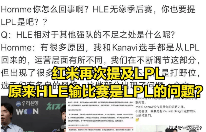 真正点燃舆论的,是红米赛后的发言,承认BP失误本是教练分内之事,但随后把问题延伸到“LPL影响论”,就显得格外刺耳,kanavi在LPL打出过MVP级表现,红米也曾在LPL取得过成绩,如今一旦输球,就将适应问题、风格问题乃至责任一股脑甩给LPL,难免给人一种“赢了算自己,输了怪环境”的观感。