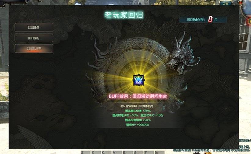 为迎接老玩家回归,官方准备了丰厚专属福利:回归玩家可领增益buff,快速提升暴击、攻防属性跟上战力;10天回归活动中,每日可领珍稀装备与道具,活动进度清晰可见,无需耗费过多精力就能重回战力巅峰、拾回当年手感。