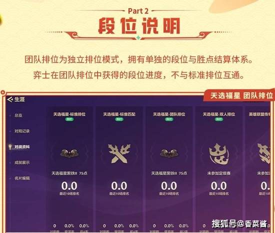 团队排位为独立排位模式,拥有单独的段位与胜点结算体系,弈士在团队排位中获得的段位进度不与标准排位互通。