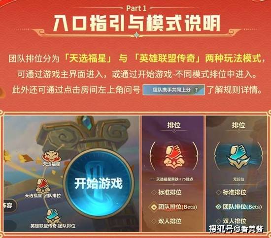 团队排位分为“天选福星”与“英雄联盟传奇”两种玩法模式,入口位于游戏主界面或通过开始游戏按钮进入。该模式采用两人成队、强强联手的形式,战斗玩法和标准排位一致,同时同队弈士不会相遇对战。