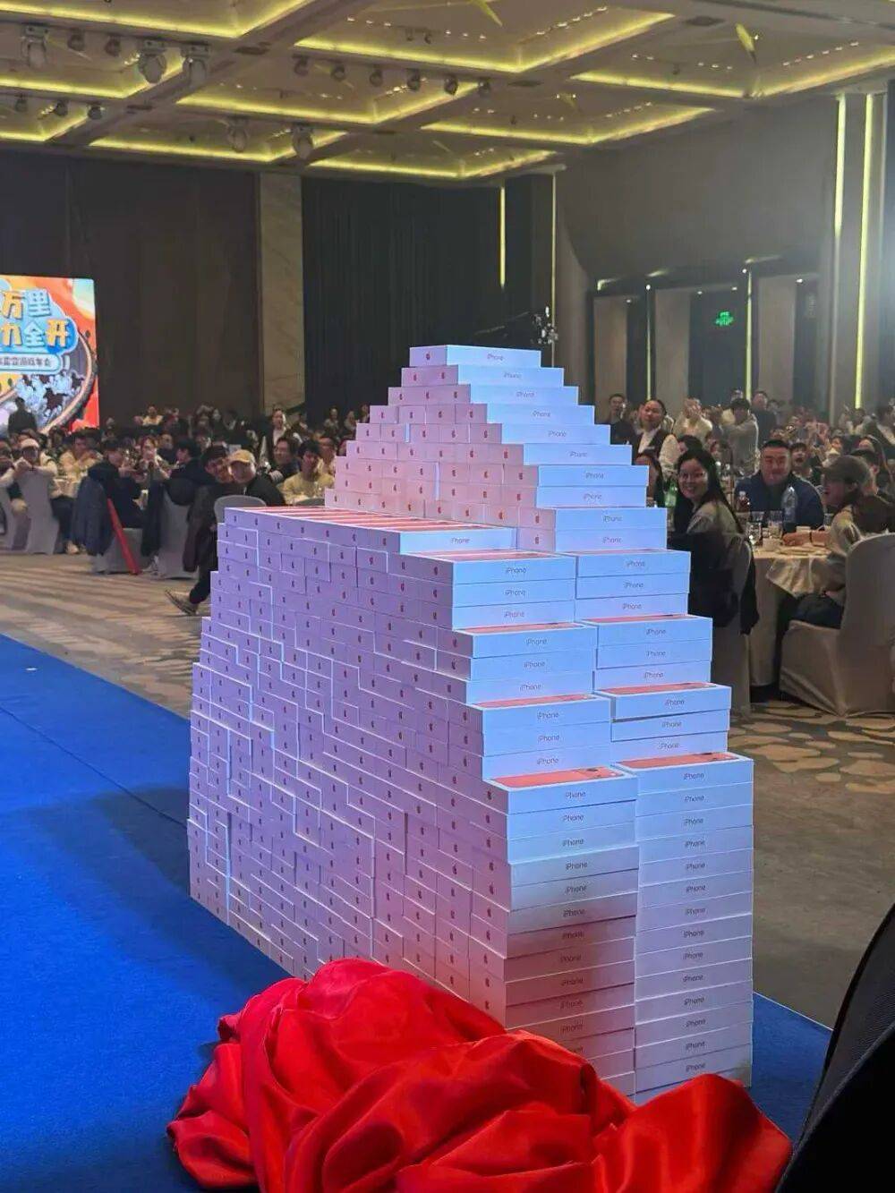 在吉比特年会现场,iPhone17 Pro Max堆成了一座小山。