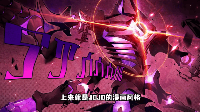 开局就是铁墓和开拓的对战,铁墓登场的画面就是标准的JOJO漫画风格,还有经典的文字特效: