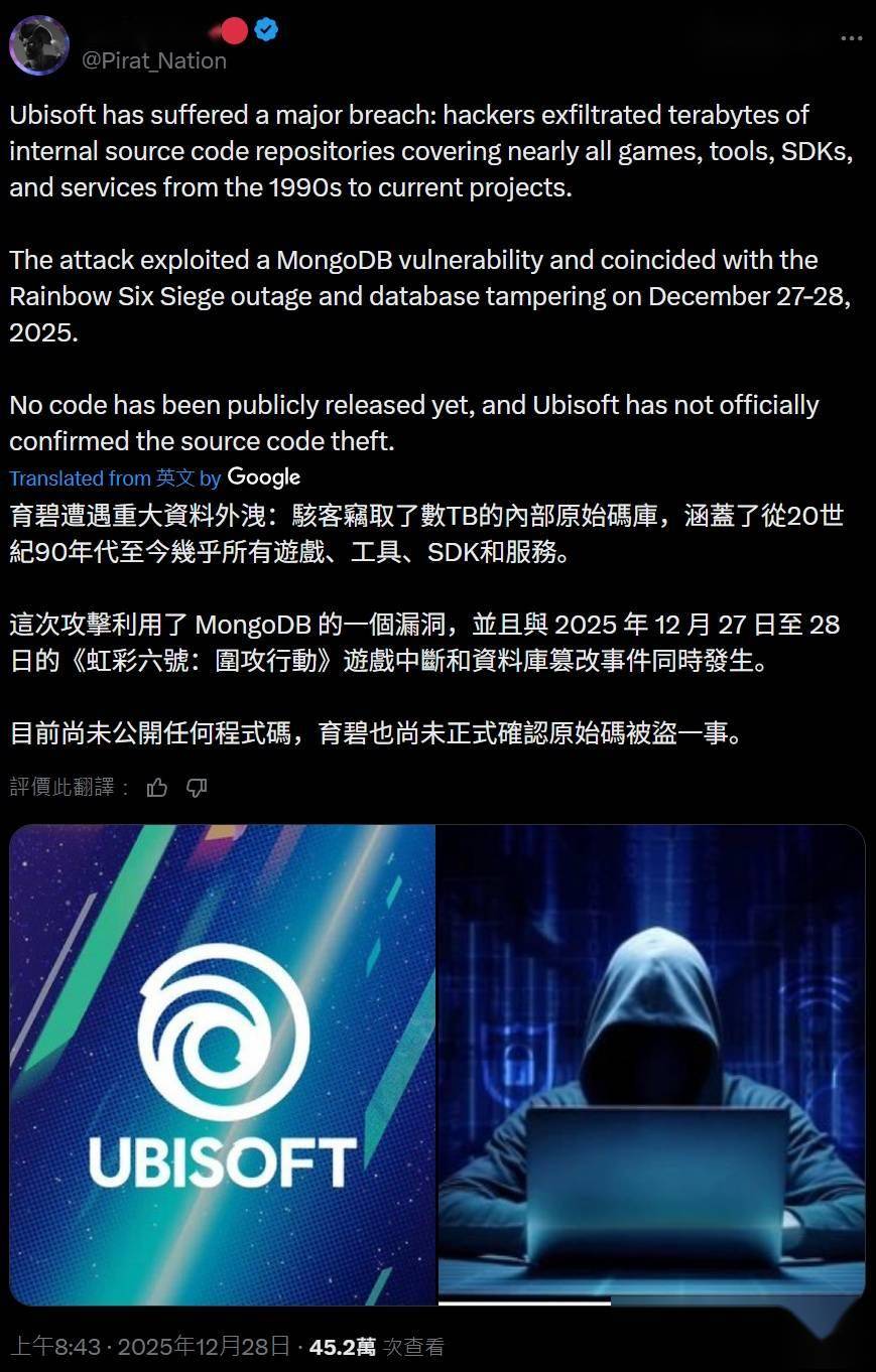 参考IT之家当时报道,有消息人士指出黑客从育碧服务器窃取了数十 TB 的源代码,相应源码涵盖公司从 20 世纪 90 年代至今推出过的几乎所有游戏、工具、SDK 和服务。同时,黑客利用了 MongoDB 的一个漏洞进行攻击,导致游戏《彩虹六号:围攻》服务一度中断。