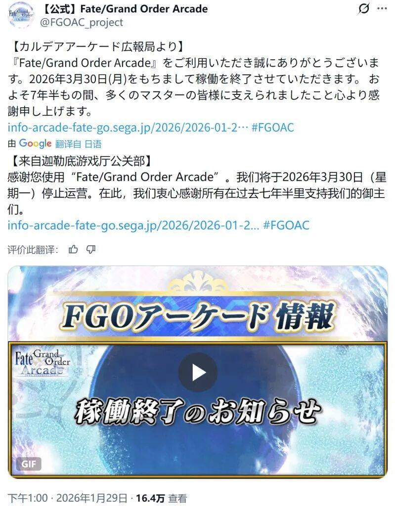 当时间来到2026年1月29日,让手游玩家恨不得杀之而后快的街机,终于宣布将要彻底打出GG了。