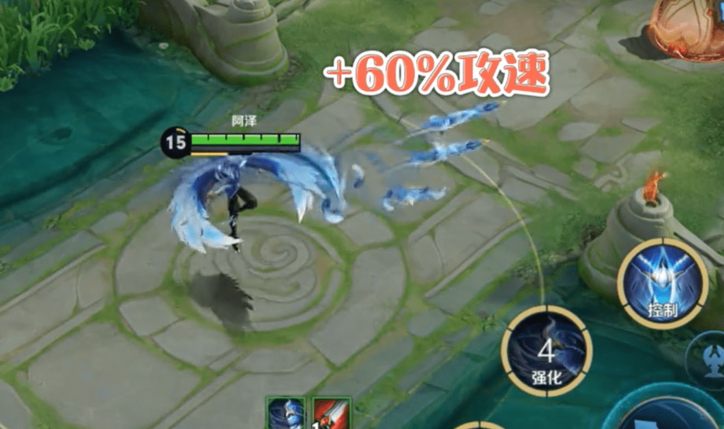 那讲完王者荣耀云中君大招之后,我们来讲一下被动。那首先云中君被动一共分为三部分。第一部分就是血条下方这个蓝色能量条,蓝条越多移速越快,最多可以增加70点移速。但正常情况下,如果你只用平A这个蓝条是很难A满的,它必须要配合二技能带来的60%攻速加成以及装备的攻速加成,这样才可以快速A满我们的被动,要不然蓝条很难叠满。那第二部分就是被动印记的撕裂效果,现在你随便放技能或者普攻灭中都可以造成撕裂效果,敌人每跑100码就会造成额外伤害,最多可以叠5层。但是只有英雄需要移动,对野怪和小兵他不需要移动也能造成撕裂伤害,并且每25点物攻还会提升0.01的伤害比例。