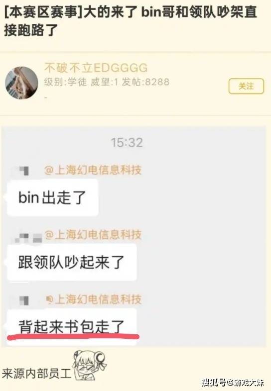 这个“书包彩蛋”,显然不是随手一放,前几天Bin与领队发生争执后背包离队的风波,在圈内早已传得沸沸扬扬。从“情绪上头直接走人”,到父母介入、本人道歉回队,这一整套流程,让本就话题体质拉满的Bin,直接被推上了舆论显微镜,更尴尬的是,这件事迅速脱离了战队内部矛盾的范畴,变成了全联盟调侃的素材,甚至被不少人当成“职业化管理反面案例”。