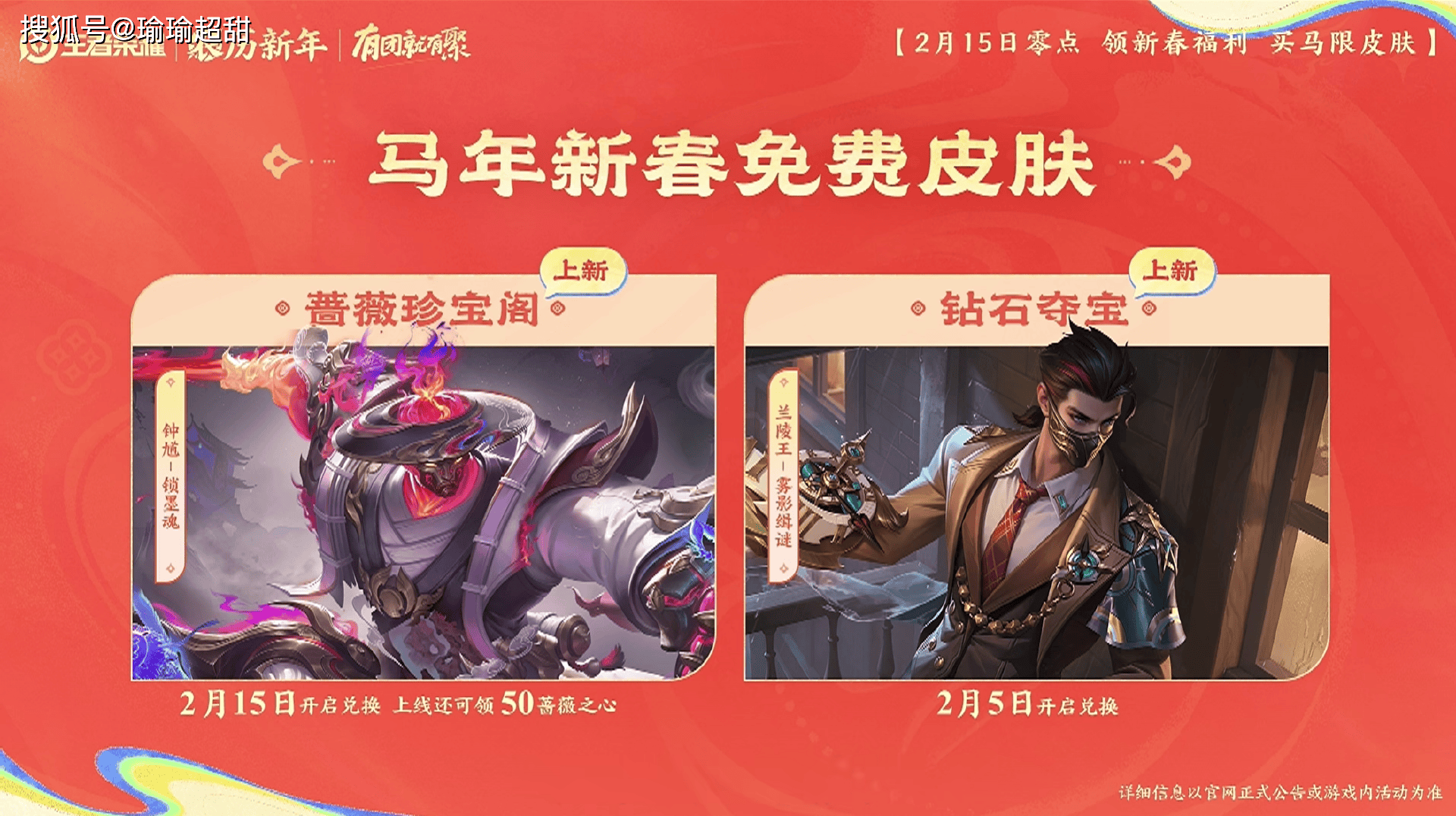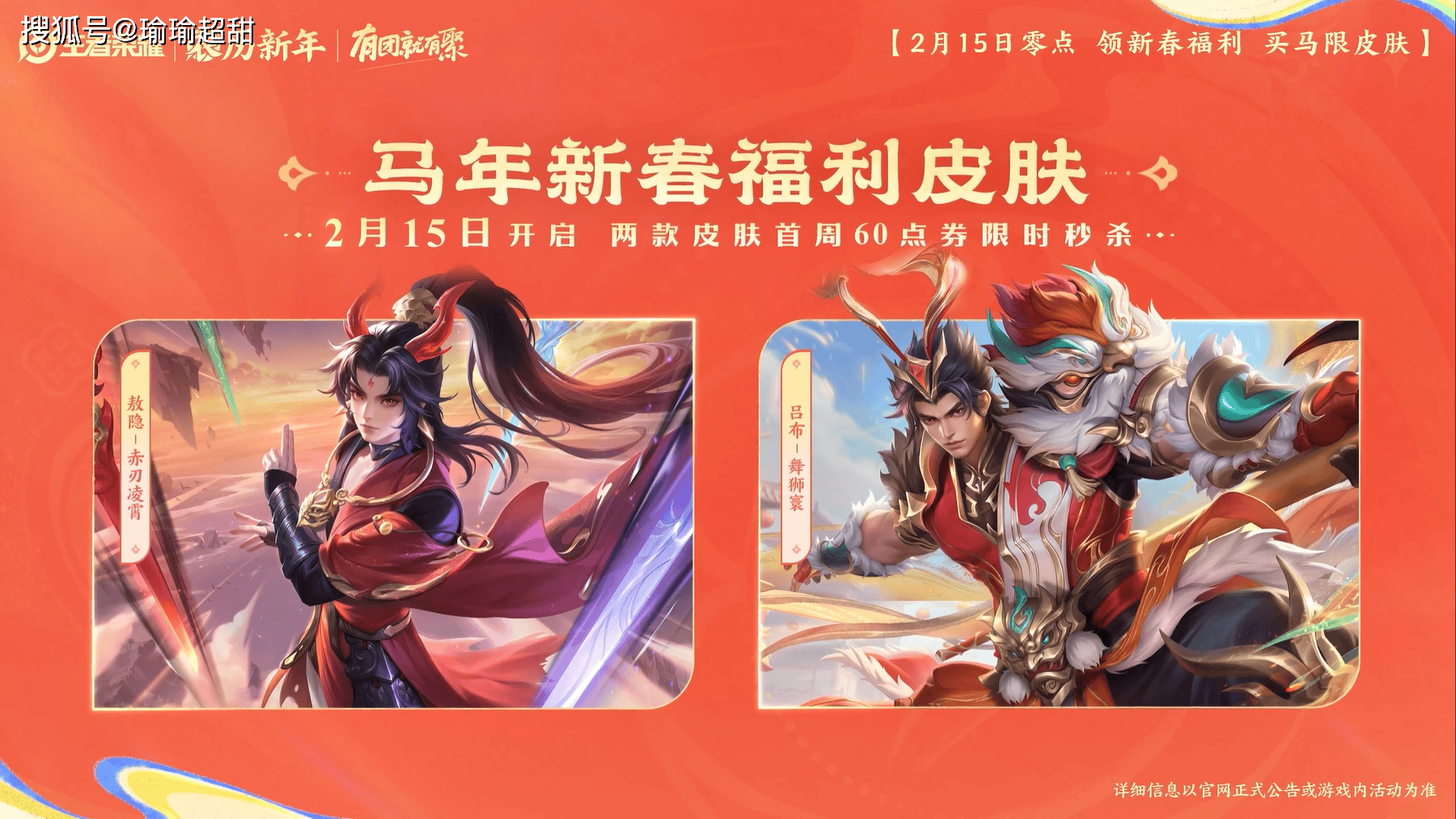首先就是马年限定皮肤,目前已经确定马年限定皮肤一共有 6 款,而对应的 6 款皮肤分别给到了关羽、马超、狄仁杰、貂蝉、云缨和朵莉亚。