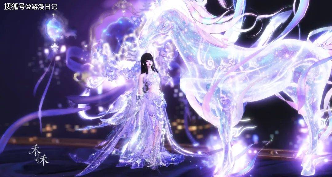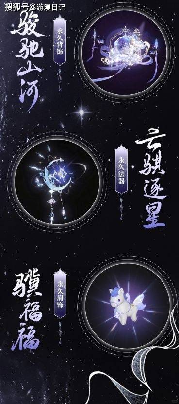 除了新时装上身,还有更多搭配,比如背饰【骏驰山河】是仙宫剪影,悬浮在身后,金辉闪闪的贵气却又不浮夸;【骥福福】肩饰是“江湖最靓的崽”,软萌的小白马带着透明小翅膀;【驰骏霜焰】武器,蓝色冷焰随动作流转,挥剑的时候像劈了一道星河;以及乘骐入画、璃驹驰绘、青骢琉云三款马年国风主题的家具,将山河意趣凝于方寸之间,增加了春节氛围还能美美出片。