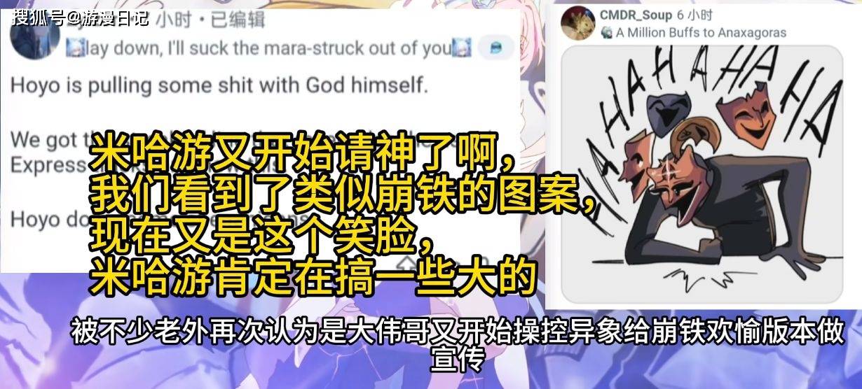更好笑的是,三星合月这一天文现象的发生时间是上个月,恰好是原本4.0版本应该上线的日子,就有玩家调侃“是不是版本延期忘记通知阿哈了?”、“米哈游操控异象,好笑度100%,阿哈算准时间来看新版本结果被老米放了鸽子,好笑度1000%”、“阿哈没被通知,阿哈真没面子”……