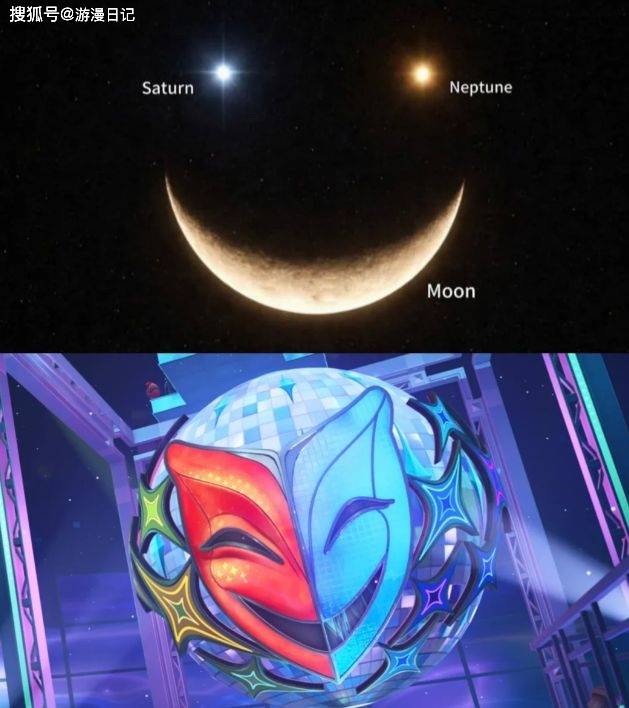 大家发现了吗?这月亮、土星和海王星的罕见重合,居然组成了一个超级像阿哈的欢愉笑脸。