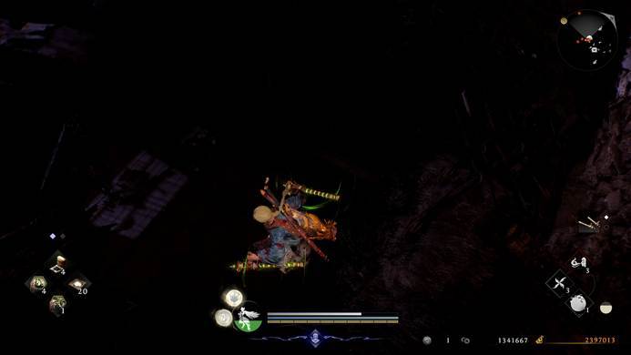 同时,忍者技能组里还有一个叫虚身之法的词条,这个词条可以让贴身释放的霞产生额外的精力回复效果。虽然单次的回复量比不过流转,但考虑到忍者形态整体的精力消耗不高,如果持续近身缠斗,并且频繁使用霞进行取消,精力实际上很难枯竭。再以旋棍为例,《仁王3》的鬼舞和神薙完全取消了精力消耗,只要碎破能粘到人形敌人,配合频繁鬼舞取消回精,经常是直到对面被刮死,我的精力都用不完。