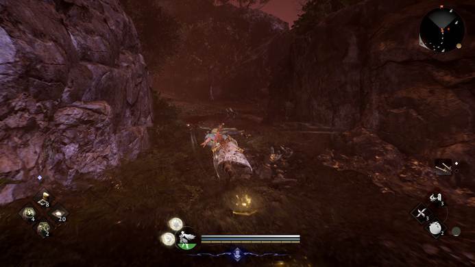 与其说,《仁王3》的地图是开放世界,不如说是等比例放大的箱庭。在大体框架上,会和《龙之信条2》的地图更加近似,但缩减了绝大多数不必要的风景填充,只留下了最基础的箱庭结构,互相之间紧密耦合,地图紧凑程度远高于《浪人崛起》。根本不需要骑马,或搭什么滑翔翼,只需要游戏给到的加速跑动,就能快速串联起不同的箱庭结构,维持“仁王”系列一贯的战斗节奏。