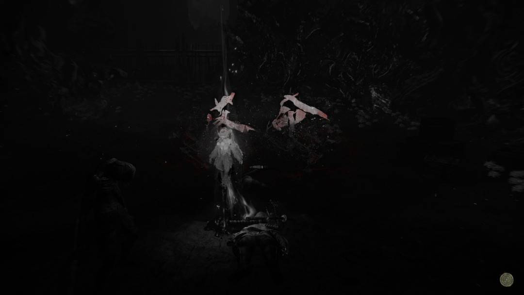 有一点值得额外注意,现在地图上会定期出现血刀修罗。打倒血刀修罗可以一次性祛除附近所有的血刀盅,爆出大量的装备。这玩意应该是终局刷装的一个主要玩法组件。问题在于,血刀修罗在你刚开始游戏的时候就会刷,那时你可能连三段架势都没解锁,数值也低到只有一刀多一点的容错率。但你不信邪,硬是用忍者形态凹了一个多小时,最后死了三十次,终于过了,然后爆了一堆可有可无的装备。