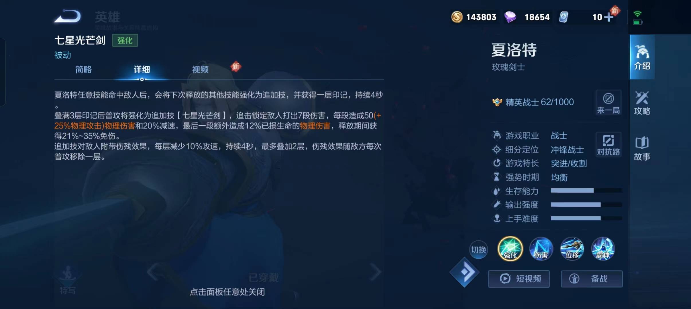 值得一提的是,王者荣耀夏洛特的强化普攻七星光芒剑也判定为追加技,也能触发被动的解攻速效果,这个被动效果可以让所有的对抗物变成负攻速,这也是很多人打不过夏洛特的原因之一。