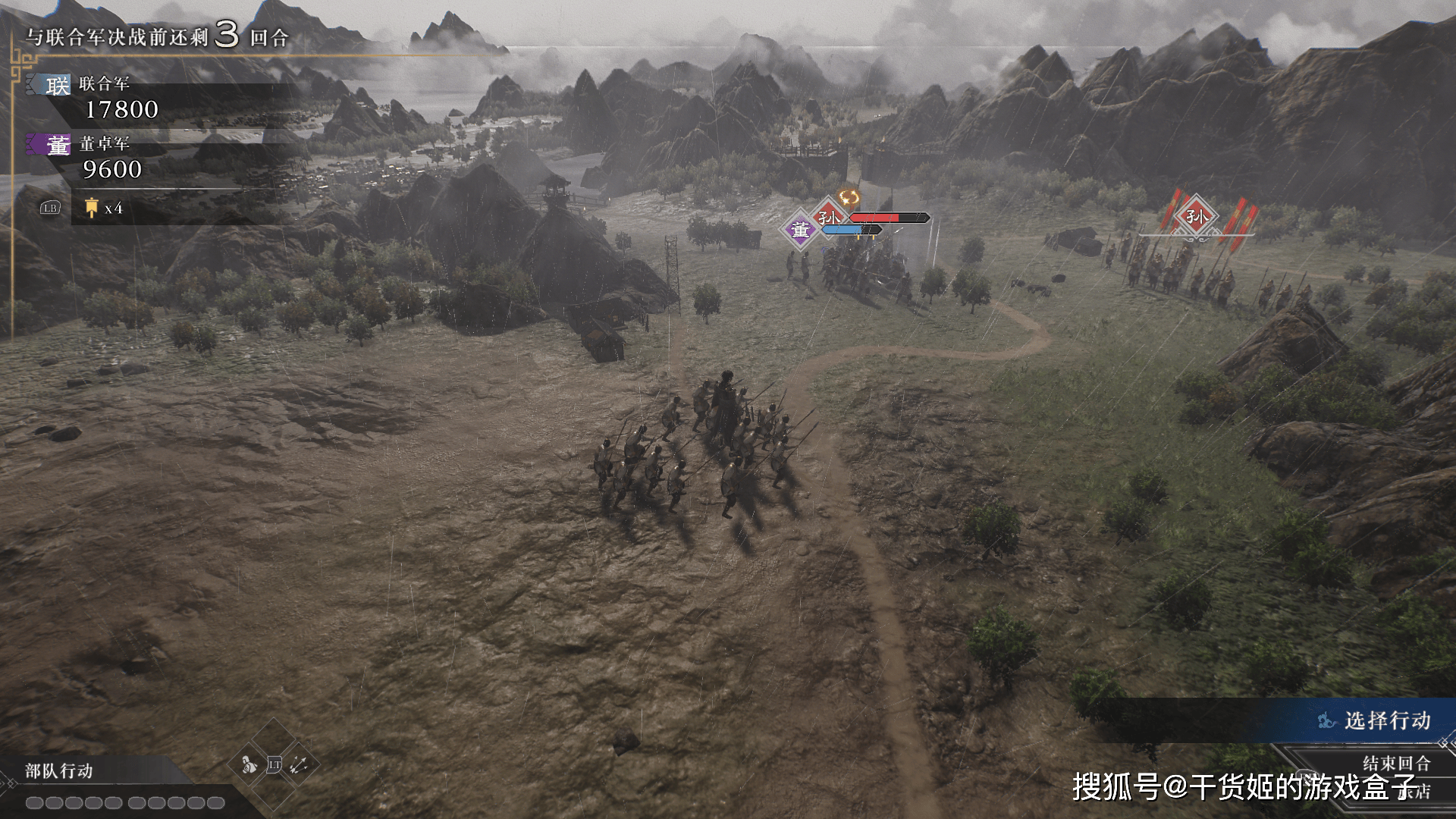 DLC每个角色路线有三个大关卡,期间会有几场军略对战。军略虽然是新增的玩法,但体验起来还是比较微妙。在两军交战中,数个小队伍会彼此交战,玩家要做的就是介入战斗,击败敌人队伍,但具体的呈现形式还是在小关卡内完成击杀400敌人、击败四名武将等重复性强的内容,击败敌人后可以获得秘策,理解为非常强力但只能用一次的强力战术即可,秘策能大大降低最终决战的难度。虽说在一定回合数内尽可能击败多的敌人确实有一定策略性,但就DLC的体验来看更像是给续作的试水,