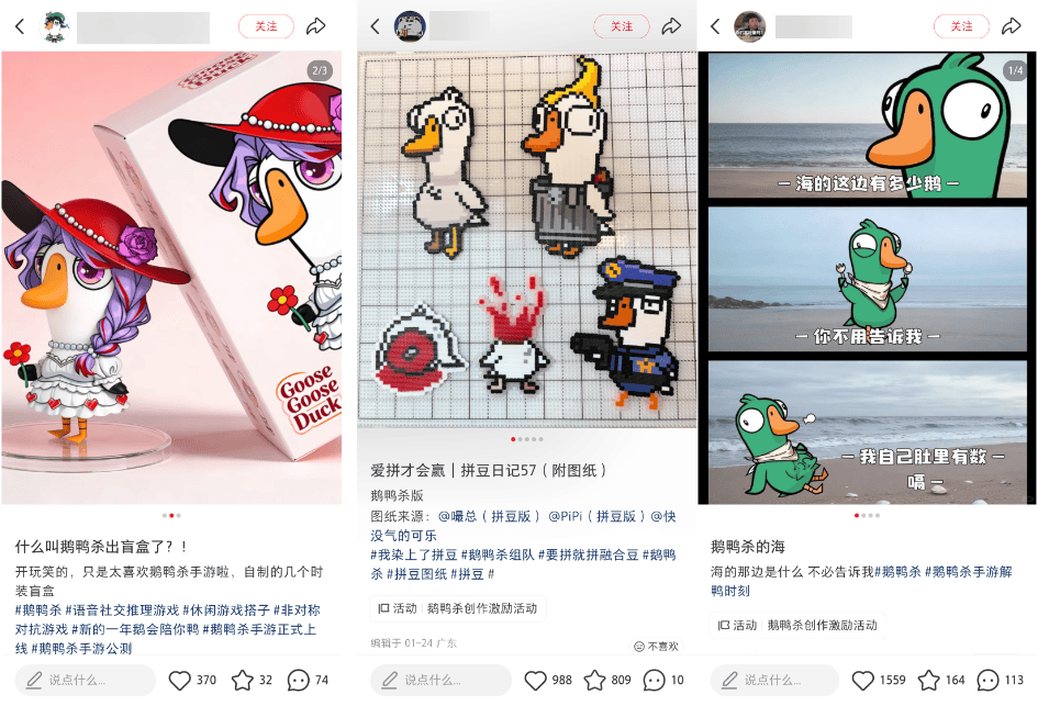 第二是,相较于传统的创作者PGC生态,我们这次观察到了很多普通玩家在社交平台的UGC产出。特别是在小红书平台上,有很多女性用户很有特点,她们会用笔记的方式来号召一些新的玩法,哪怕她们并不是创作者,也不拿激励奖金,但她们真的能想出很多很有意思的玩法。我们每天会把用户的小红书的帖子全部翻一遍,也会加热一些我们觉得有意思的帖子,帮助他们被更多玩家看到。