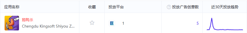 目前《鹅鸭杀》在投广告创意仅5组 数据来源:AppGrowing