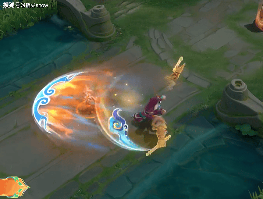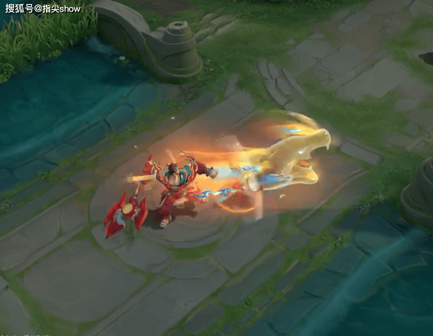 大招重击地面,五道向前蔓延的火焰浪潮,在末端,镌刻祝福的英歌旌旗升起。