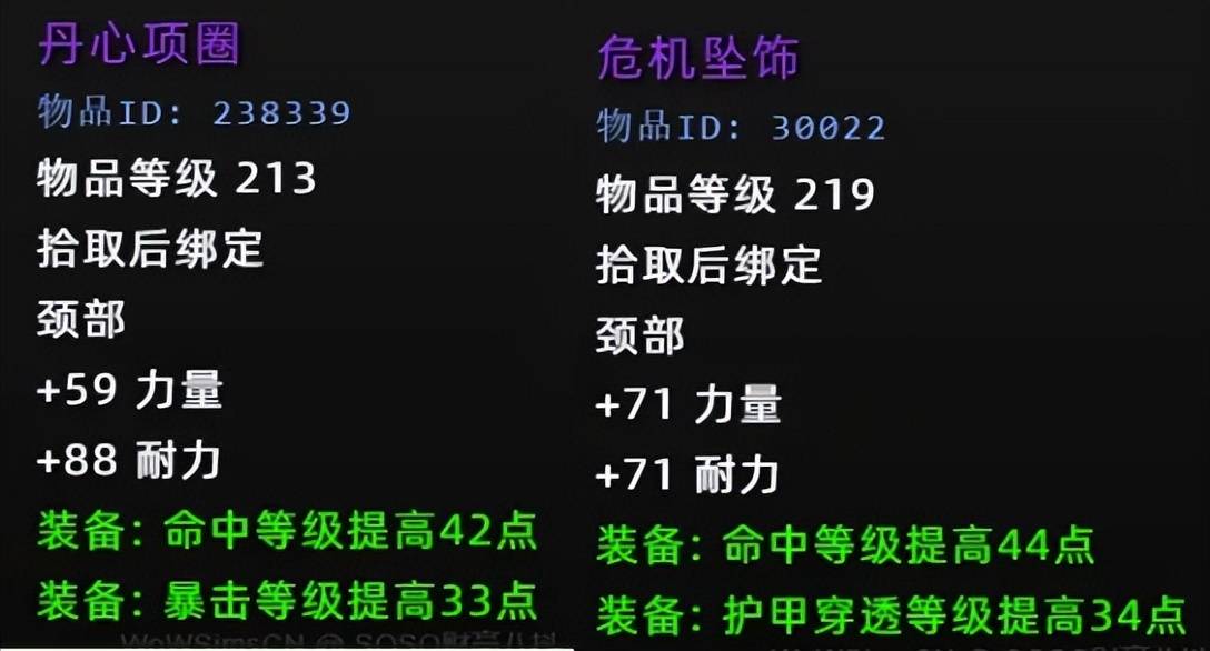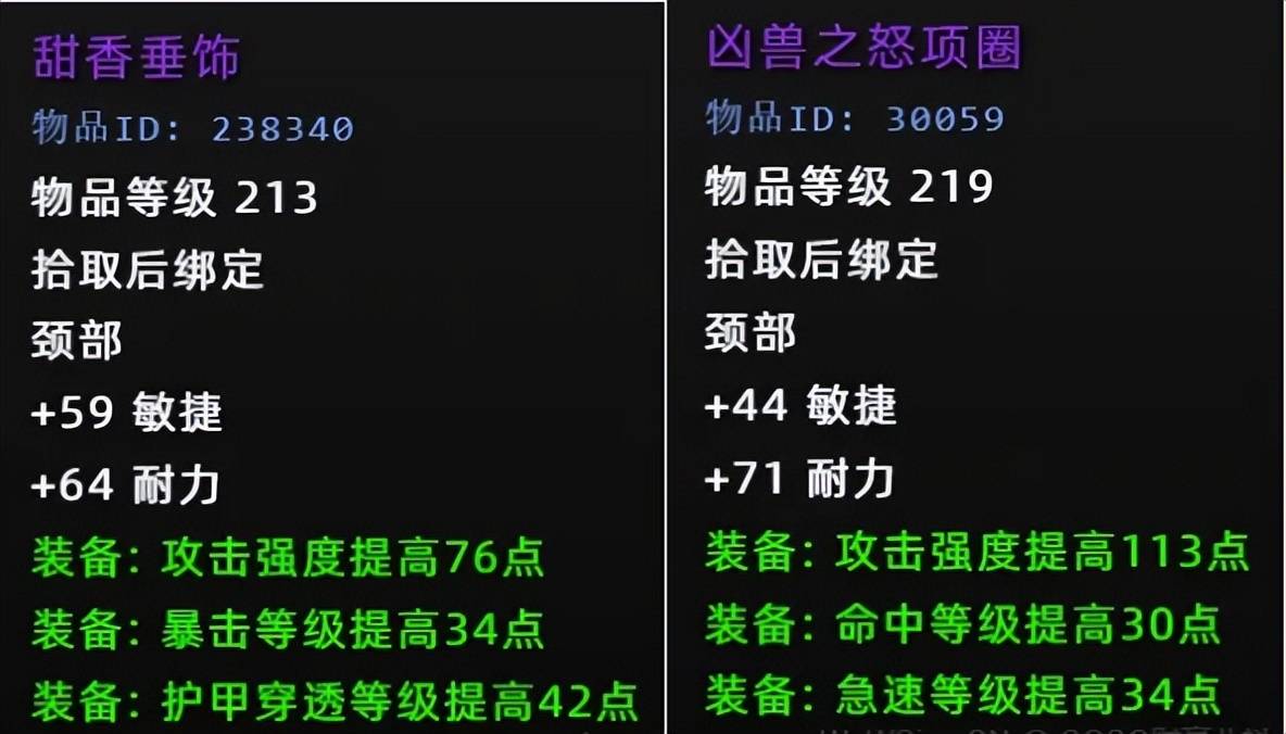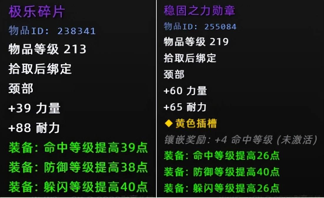 纵观魔兽史上的情节人活动,防御项链一般都比团本的好,就拿MC掉落的219稳固之力勋章做对比,虽然少一个孔,但其它属性不输219装等,最关键的是左边的耐力高出23点,性价比拉满。